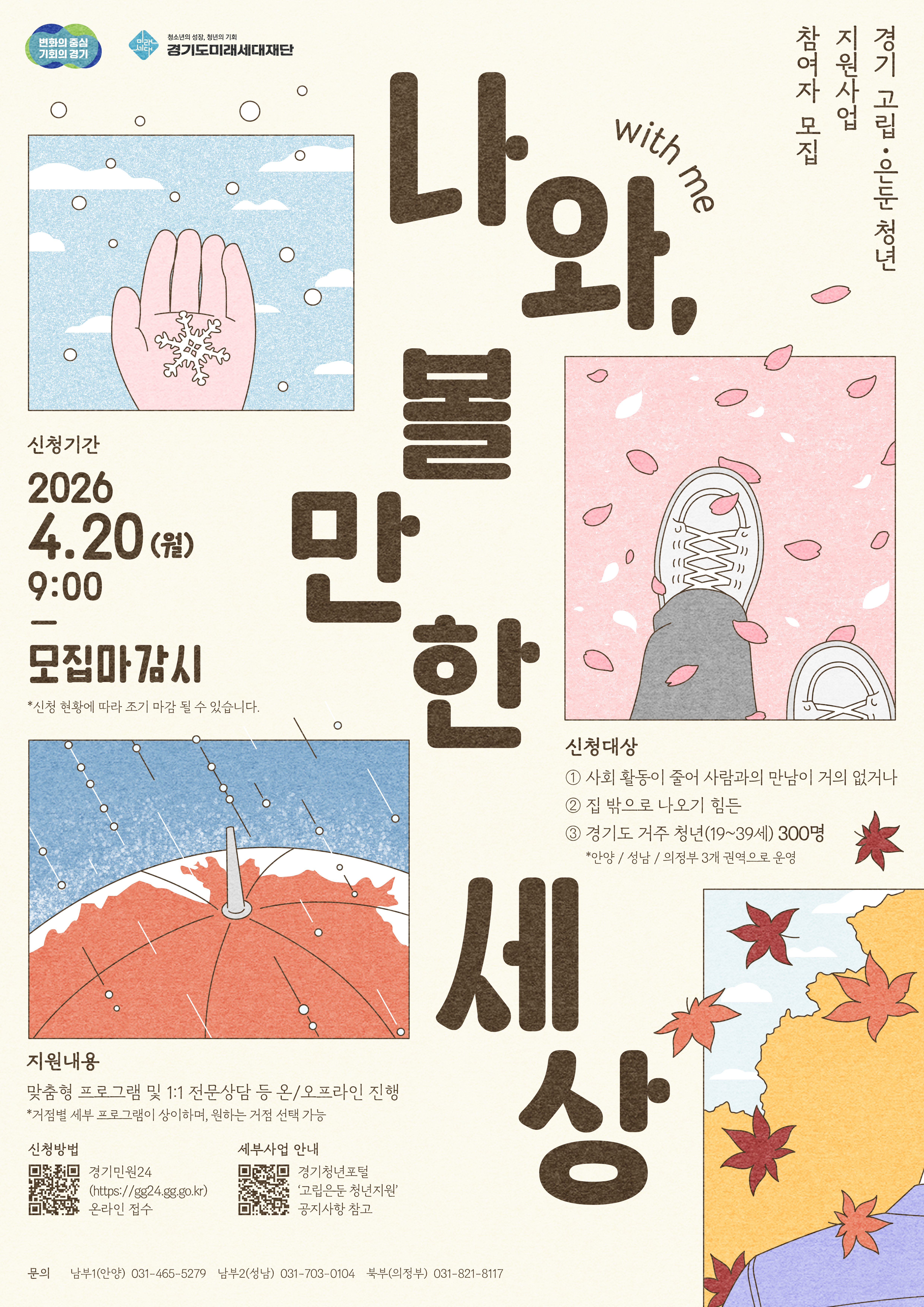 2026년에도 경기도 고립·은둔청년 지원사업을 진행합니다.